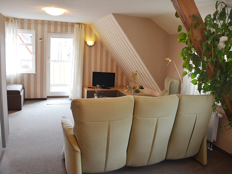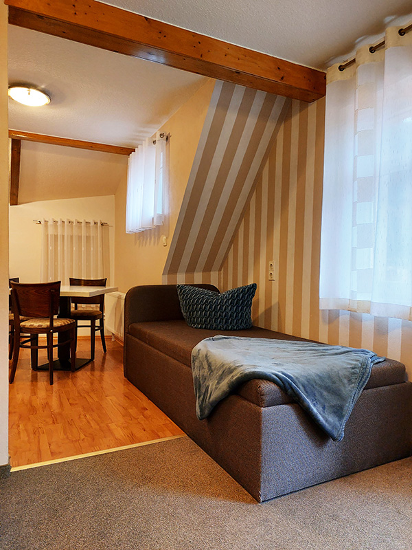 Das Appartement befindet sich im Nebenhaus und hat einen kleinen Balkon mit Blick auf das Felsmassiv der Bastei. Es bietet viel Platz und ist ideal für längere Aufenthalte, damit Sie sich wie zu Hause fühlen können.